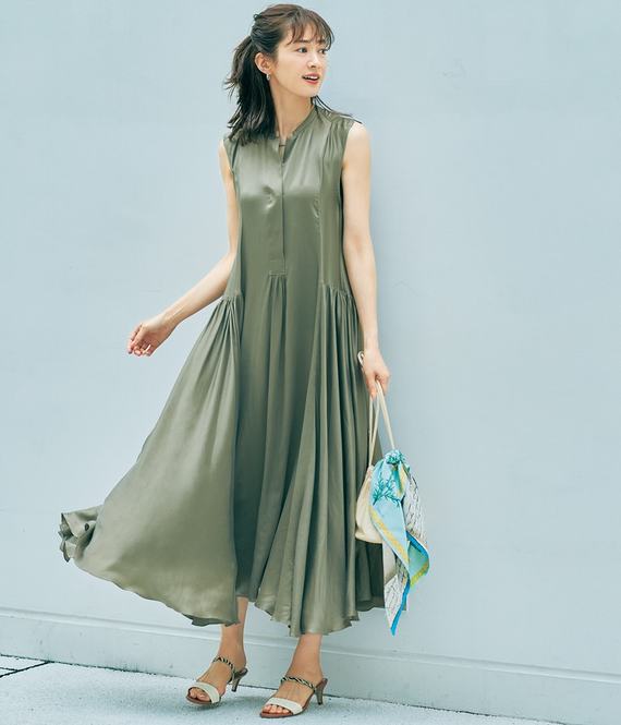 バイカラーに縁取ったレースがシックな印象で、お値段以上に高見えしてくれるんです。ストンと落ちるAラインは腰回りの気になる部分をしっかりカバーして、スッキリとしたシルエットを作ってくれるのでスタイルアップ効果も期待できます。