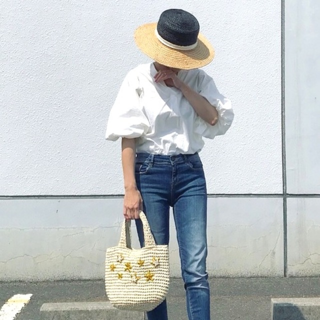 定番だけどやっぱり可愛いデニムとのコーディネートは、シンプルイズベストな究極の大人カジュアルスタイル。ざっくりフロントインして、こなれ感たっぷりに着こなしちゃいましょう♡