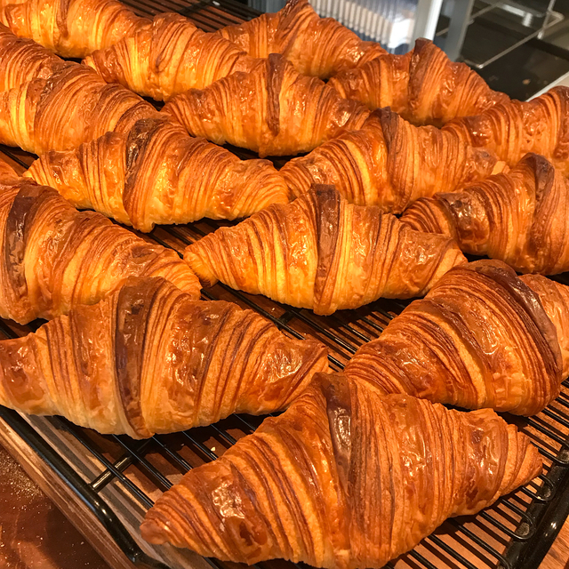 美しい断面に期待しつつ、半分にカットしてみます。ナイフを入れたときの感触、外側の生地がホロリとはがれる姿から、生地のサックリ&しっとり感も伝わってきましたよ♪