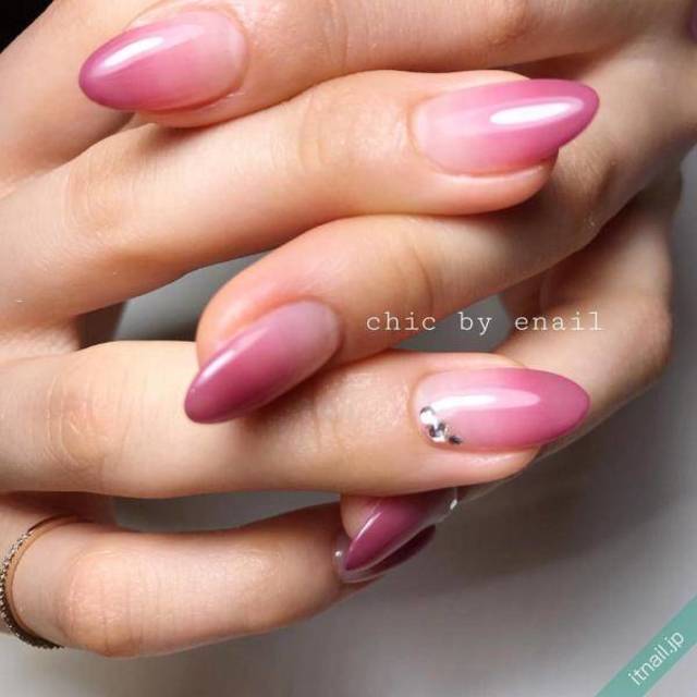 赤みが強いラベンダーをぼかすことでレトロな仕上がりに。ストーンを飾れば、大人の女性にぴったりのネイルの完成です。さらに1本だけ小粒のパールを飾ることで、指先のアクセントになってくれること間違いなしです。