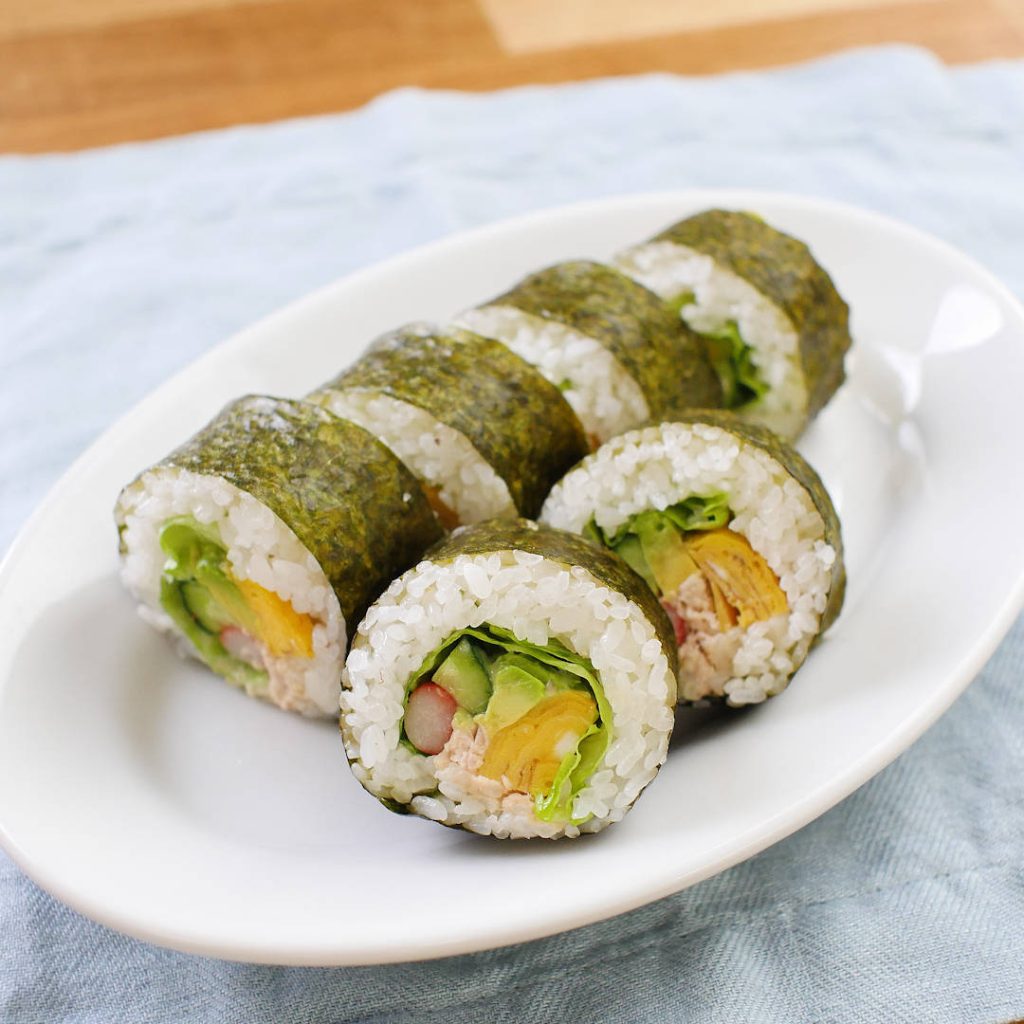 酢飯に使うごはんは、温かい方が調味料となじみやすいですよ。具材がかたよらないように、海苔の上に均等に隙間なく広げましょう。また、海苔巻きをカットする際は、その都度包丁を濡れ布巾で拭きながら大きくスライドするようにカットすると、断面がきれいになりますよ♪