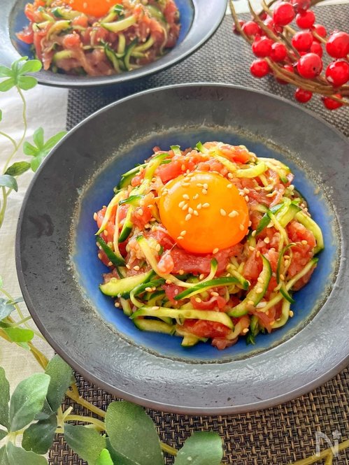 にんじんをスライスして、ギリシャヨーグルトを入れ、塩コショウで仕上げていきます。さっぱりしているのにコクたっぷりの濃厚な味わいに、箸が止まらなくなりますよ♪無限に食べられるサラダは、大皿に盛りつけて食卓に提供したいですね。