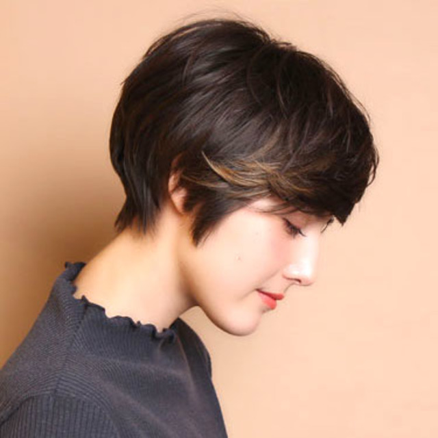 ③右側はこめかみから襟足に向かって斜めに分けます。