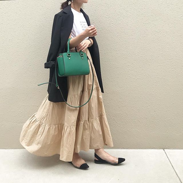 シンプルな黒のポロシャツに、今年の春夏のトレンドアイテムでもある「チノスカート」を合わせることで、カジュアルになり過ぎず、キレイめな雰囲気のトレンドコーデが完成します。