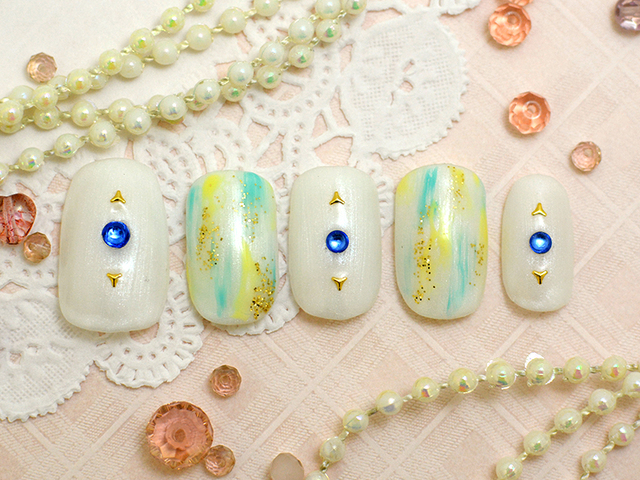 爽やかなキュートさが存分に出ているこちらのネイルは、手元を見る度に元気が出そうな仕上がりになっています。マットカラーが印象的で、お出かけネイルとしてもgoodです。指輪やブレスレットなどのアクセサリーとの相性も抜群です。