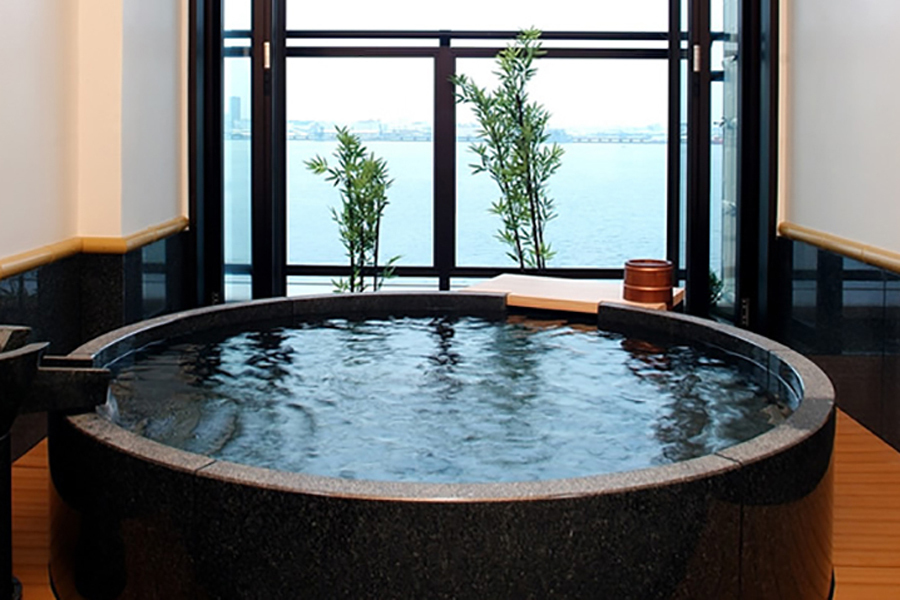 窓外にクルーズ船行き交う海原が広がる「家族風呂」でのリラックスした時間が、二人の距離をさらに縮めてくれること間違いなしです。