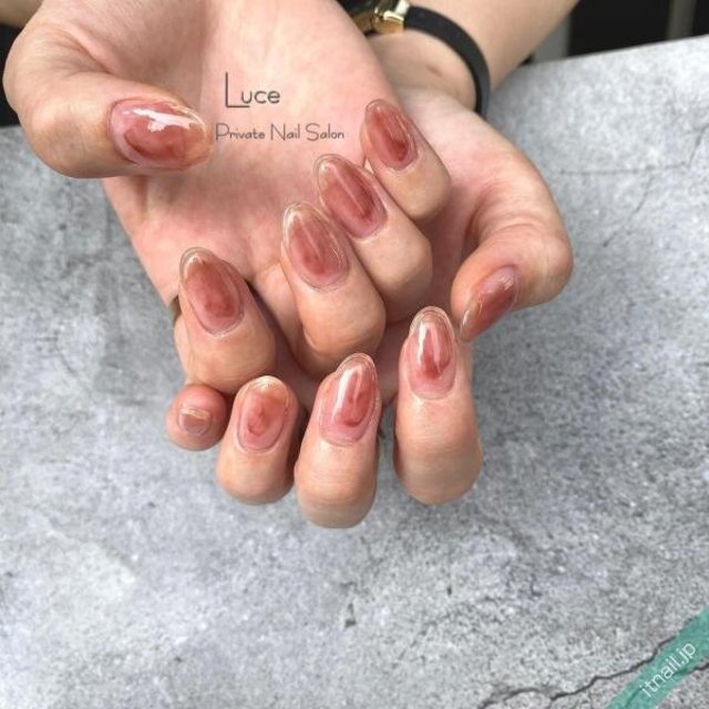 カラーそのものに落ち着きがある女性らしい雰囲気なので、短い爪も大人な雰囲気に仕上がります。