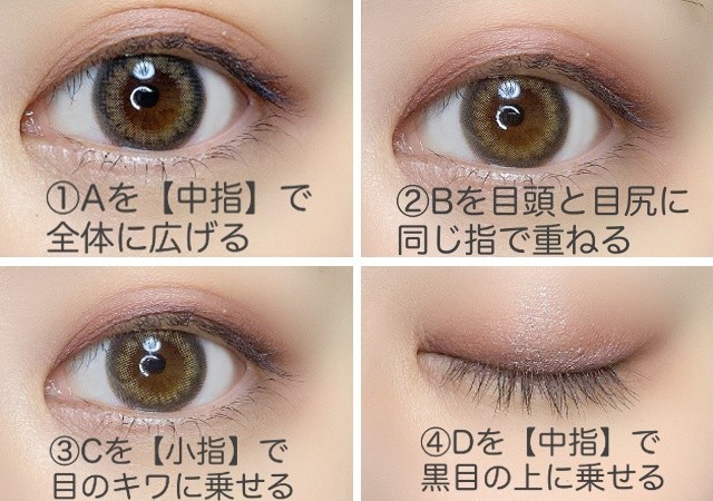 注意点としては、最初に色を置く場所に気を付けることです。ブラシ塗りでも指塗りでも共通することですが、最初にアイシャドウを置いた部分が色が一番濃く残ります。