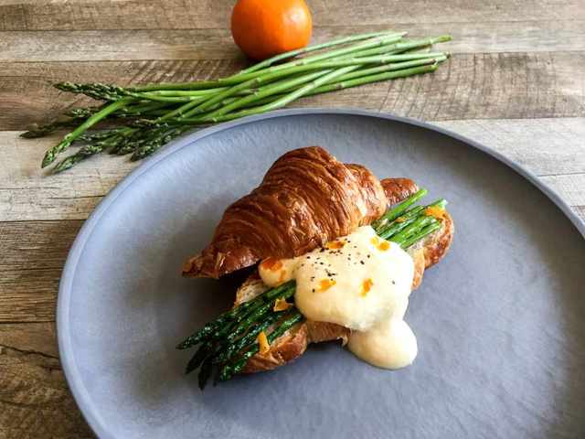 「アスパラのクロワッサンサンド オレンジオランデーズソース」のレシピ