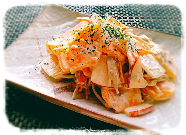 イカとりんごという新しい組み合わせにちょっと挑戦!でも色合いも味わいも間違いなくおいしいはず。そんなのあり?と客人に驚かれるおもてなしにもってこいのレシピです。
