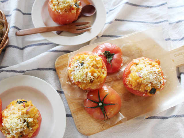 編集部公認のレシピクリエーターチーム「macaroniレシピ部」のメンバーによるオリジナルレシピ。旬のトマトを使ったレシピ「まるごとトマトのイタリアンファルシー」をご紹介します。