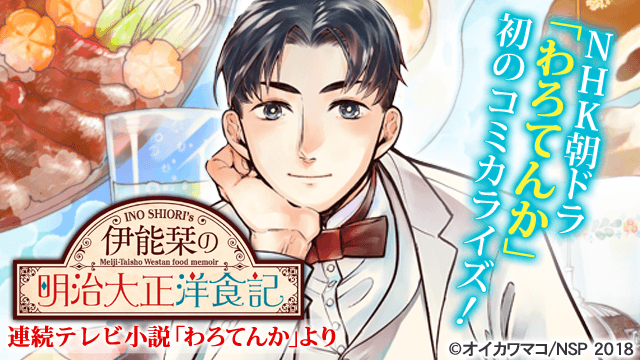 NHK朝ドラ「わろてんか」のコミカライズ!明治から大正の激動期。アルカイック・スマイルを携えた紳士・伊能栞は文明開化に沸く町中に身を置いていた。新時代のエネルギーに溢れる町で、今日も伊能は幸せな食事を取る──。(オイカワマコ作)