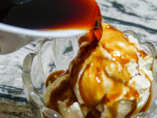 3.アイスクリームの上から温かいコーヒーをかけて完成です。
