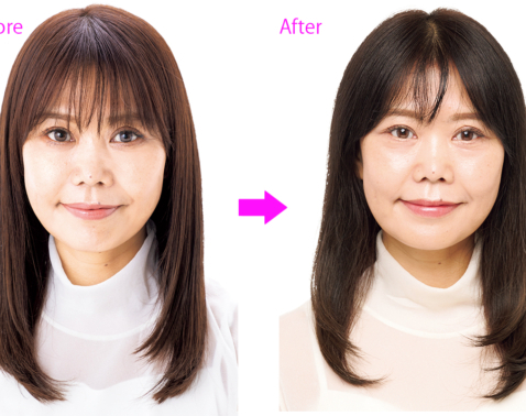 3.おくれ毛をコテで巻き、完成です。