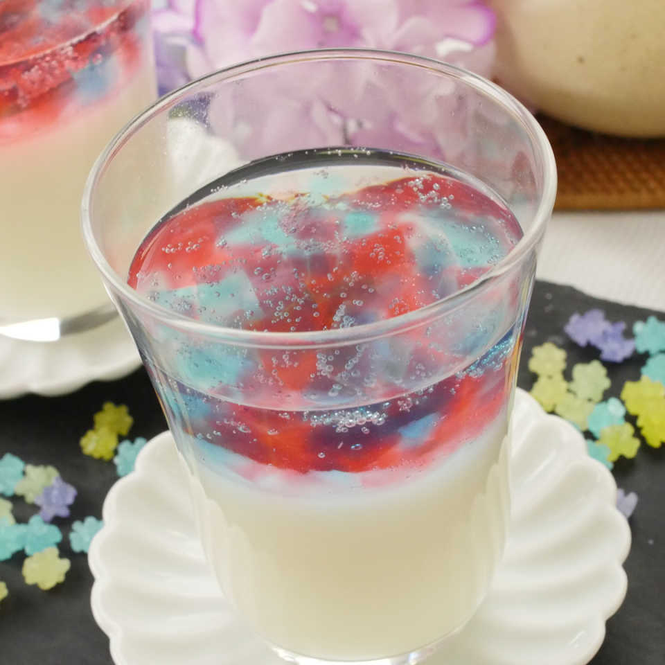 写真映え抜群の「紫陽花(あじさい)ゼリー」のレシピと作り方を動画で紹介します。かき氷シロップとカルピスがあれば、梅雨の時期にぴったりのキレイでおしゃれな紫陽花ゼリーが簡単に作れますよ。仕上げはサイダーを注いで冷たいうちに召し上がれ。