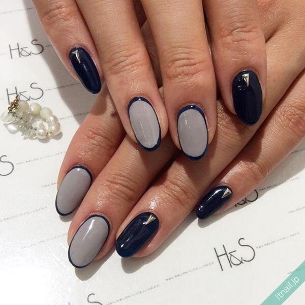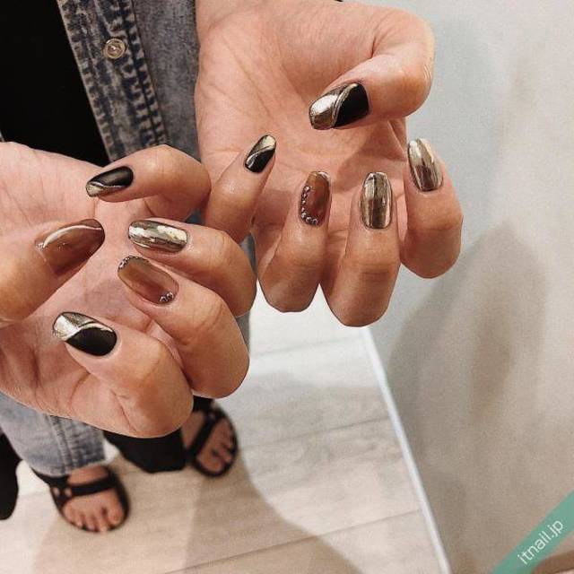 ⑥モードに楽しめる、アシンメトリーネイル
