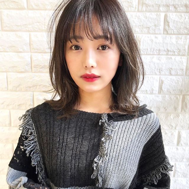 縦長な印象を演出できるシースルー前髪は、丸顔との相性が抜群。