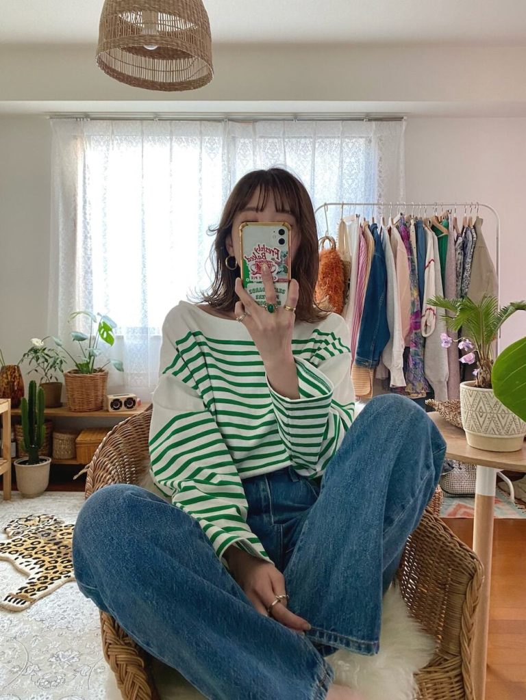 ホルターネックは胸元をグラマラスに見せてくれるので、胸のサイズが気になる方にもおすすめのデザインです。白地のボタニカル柄なら、さらっと爽やかに着こなせますよ。