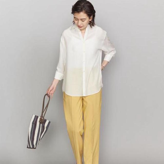 フリルが女性らしく、首元が詰まったデザインになっているので上品さも。