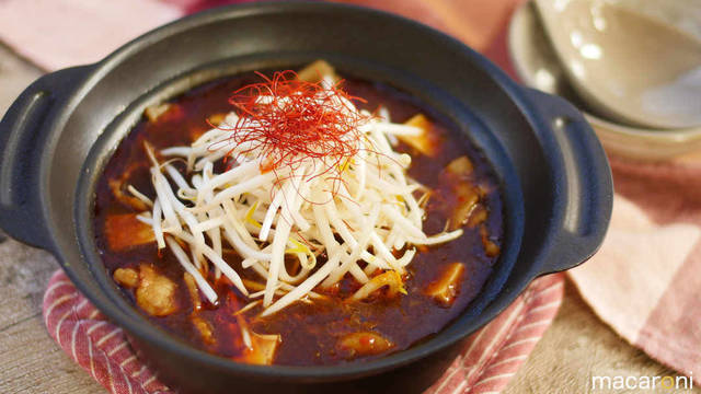 こちらは人気の「もやし鍋」を麻婆味にアレンジしたレシピ。甜麵醬をたっぷり入れて、コクのある深い味わいがおいしいお鍋です。豆腐ともやしというコスパ最強の食材を使うので、ボリューム満点なのにお財布にやさしいのもうれしいですね♪