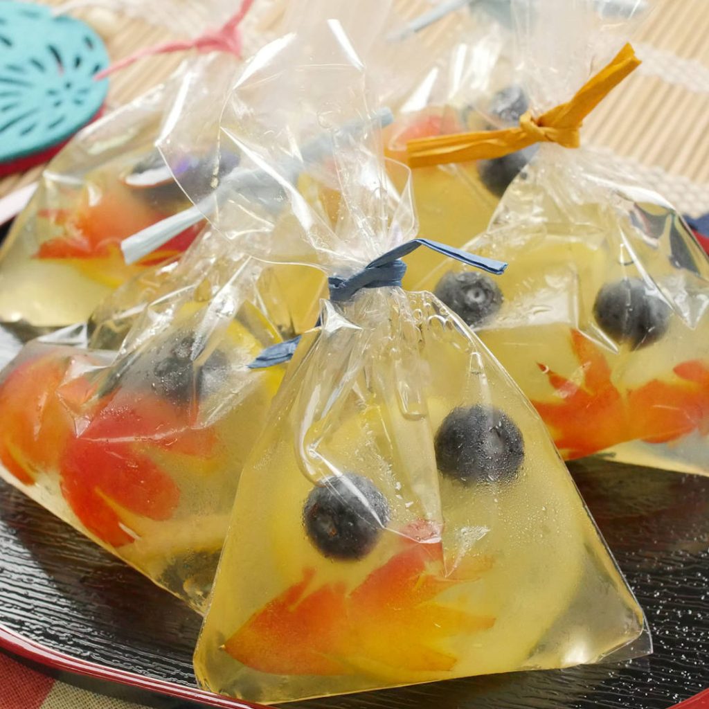 温度が高すぎるとゼラチンが固まらなくなるので、必ず火を止めてから粉ゼラチンを加えてください。氷水に当てて冷やすととろみが付き、袋に入れやすくなります。さくらんぼは生ではなく缶詰のものを使用してもOKです♪