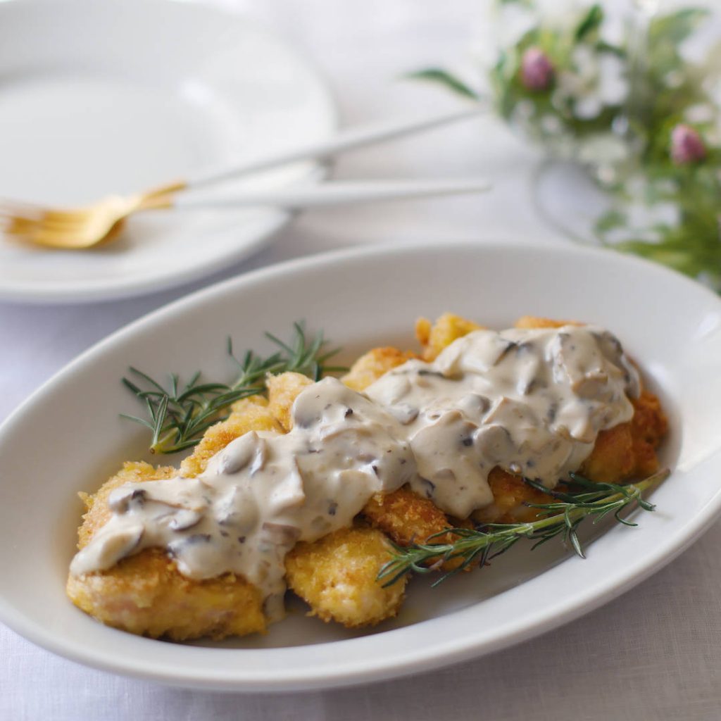 「チキンシュニッツェル」のレシピと作り方を動画でご紹介。バターでサクッと揚げ焼きにした鶏むね肉に、ブルーチーズ入りの濃厚なホワイトソースをかけました。バターやチーズが香り立つ贅沢なひと品で、イベントやホームパーティーなどにもおすすめですよ。