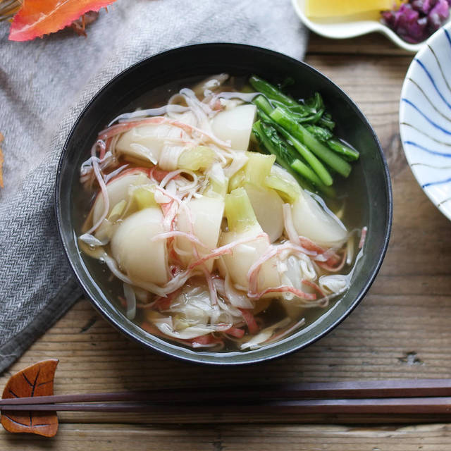 塩こしょう少々(分量外)で味をととのえます。汁ごと盛り付けて、あればパセリをちらしてのせます。