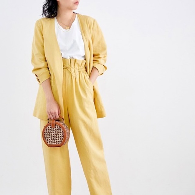 テーパードパンツと合わせれば、だっぽりともたつくこともなく、すっきりとした着やせコーデの完成!