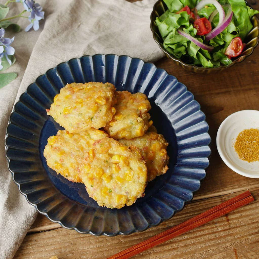 4. フライパンにサラダ油を深さ1cmほど入れて170℃に熱し、③を入れて両面がきつね色になるまで揚げ焼きにしたら完成です。お皿に盛り付け、お好みでカレー塩をつけて召し上がれ!
