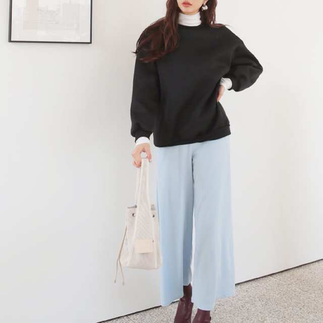 柔らかい素材感のワイドパンツを合わせて、リラクシーな着こなしを楽しんで。