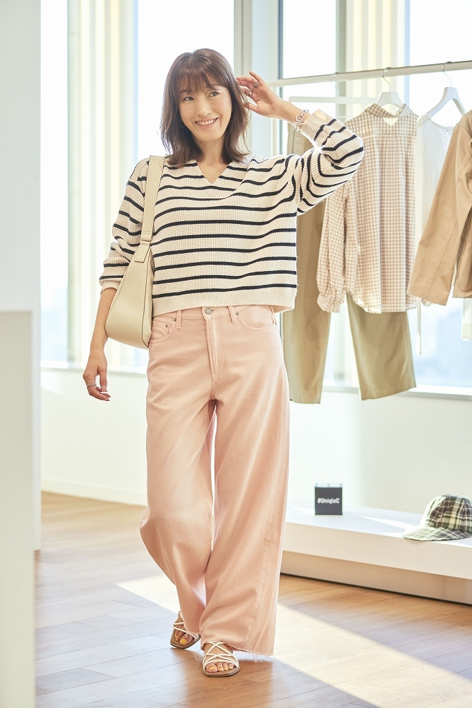 デニムに合わせてカジュアルに、きれいめなパンツやタイトスカートに合わせてフェミニンにまとめてもいいですし、一緒に発売される「スモッキングスカート」を合わせると、ワンピース風の着こなしも楽しめます。