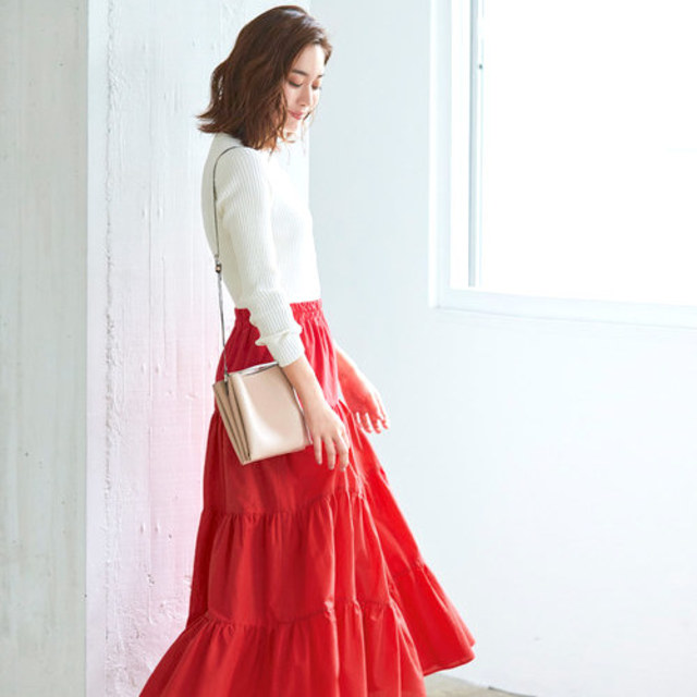 それではこちらのスカートを使ったコーデを4パターンご紹介していきます。ぜひ参考にしてみてくださいね。