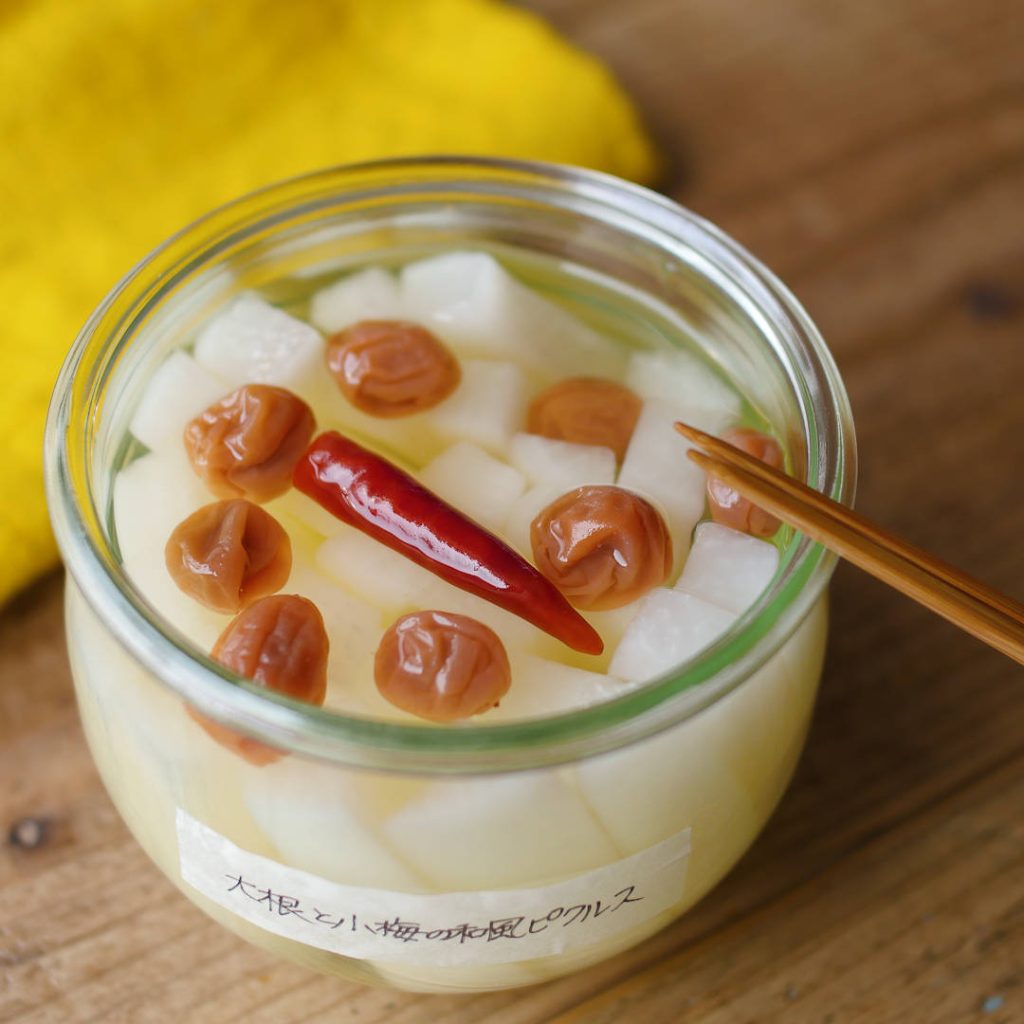 [作り置き]梅の酸味が効いてる!大根と小梅の和風ピクルス