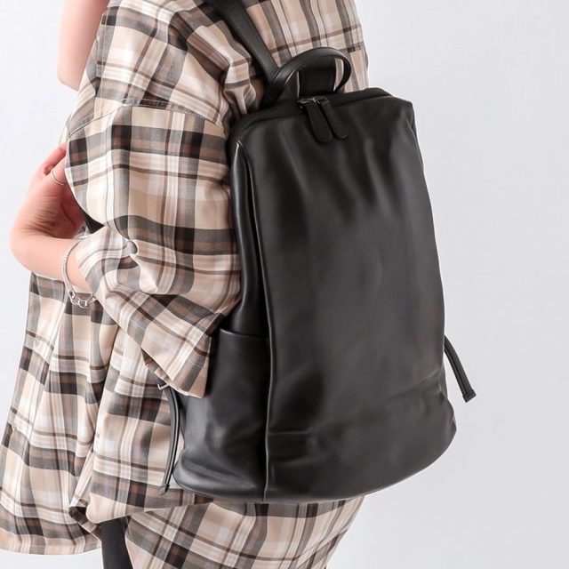 こちらもベージュアイテム。他のアイテムを黒にまとめることで、秋らしいベイクドカラーが引き立っています。