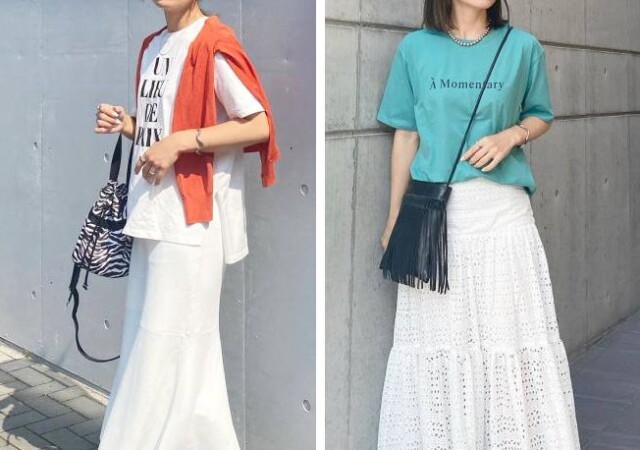 しっかりとした素材感で立体感のあるシルエットを作れます、Tシャツでもカジュアルになりすぎず、かっちりとした印象に。暑いときは1枚で、肌寒いときはアウターを着て、夏から秋まで着られます。ホワイトパンツを合わせると、シンプルでも洗練されたスタイルに。