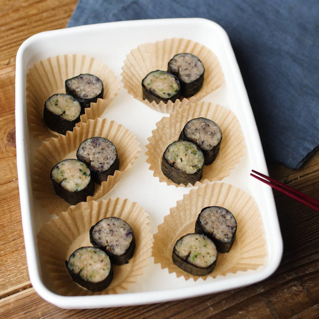 「海苔巻きつくね」のレシピと作り方を動画でご紹介。2種類のふりかけで味付けた肉だねを海苔で巻き、こんがりと焼きました。香ばしい海苔巻きつくねは絶品!小分けにして冷凍すればお弁当おかずにもぴったりです。作っておくと便利な作り置き冷凍おかずです
