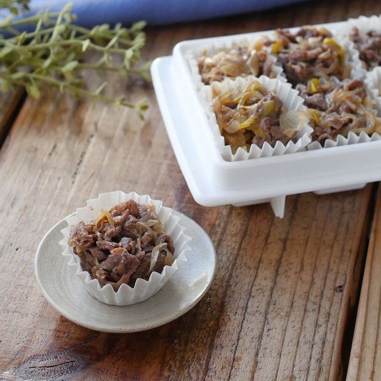 甘辛い味付けがご飯とよく合う、厚揚げを使った一品です。作り方はいたって簡単で、厚揚げをフライパンでサッと焼いたら、生姜焼きだれを絡めるだけ。冷蔵で2〜3日保存可能です。