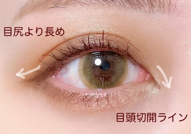 赤茶色をピンクに重ねることで、旬の赤みがかった目元に変身します。