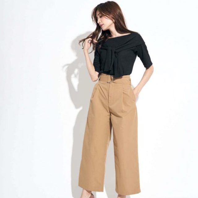 タックを施して腰回りはゆったりとデザイン。裾にかけて細くなるシルエットのため、美脚効果が期待できます。裾部分に少しスリットが入っているにもポイントで、綺麗めからカジュアルまで、使えます。