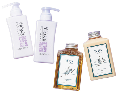 ①トップを低めの位置で結ぶ。両サイドを2つに分ける。