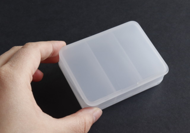 まずはスポンジ。スペースが2つあり、どちらも丁度いい広さで余裕をもってスポンジを収納することができました♪