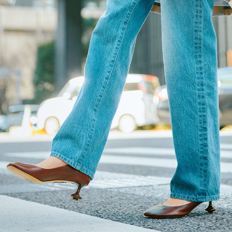 ベルトをリボン結びするだけで、高見えフェミニンなシルエットに。
