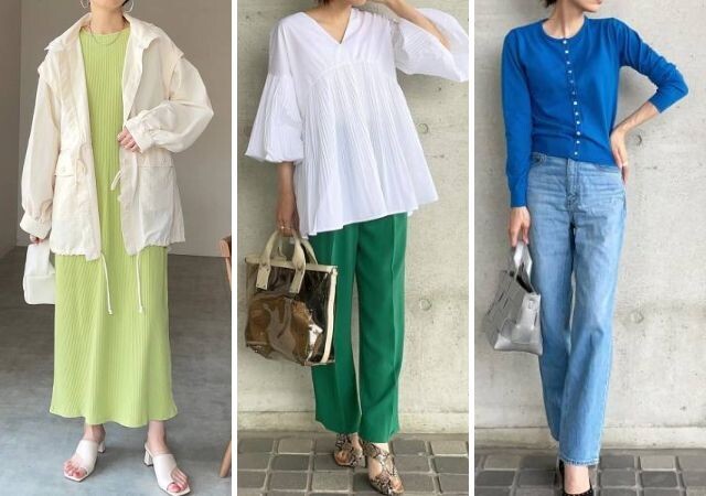 リモートワークやオンライン飲み会などのシーンでおすすめなのが、顔映えが狙えるカラーのトップス。白のインナーと合わせることで、柔らかい印象をつくれます。家から出ない日も、明るいカラーで気分を盛り上げて。