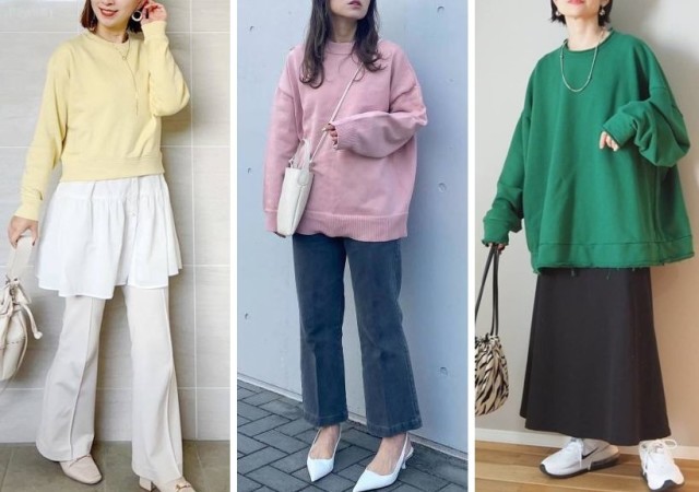 明るめのトップスを合わせるときは小物は黒を合わせればまとまりが出てスッキリして見えます。