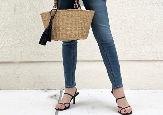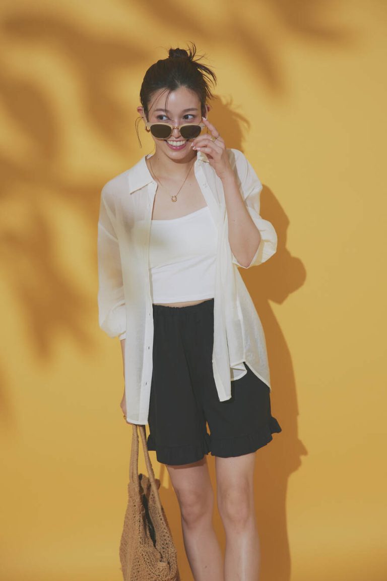 ふんわり感のあるワンピースや、写真のようなデニムコーデなど、甘さやカジュアルさのあるコーデでも大人っぽく見せてくれるのがメリット。この時期からどんどん活用していきたいアイテムです。