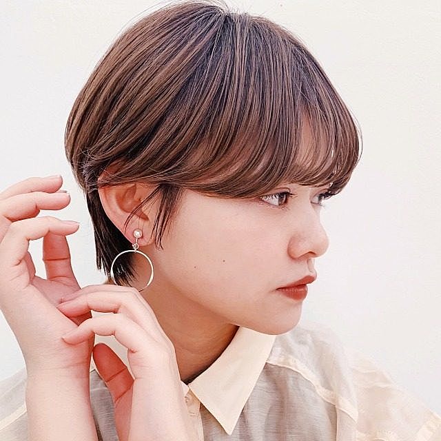 こちらは、シンプルな耳かけショートをベースにした、大人可愛いヘアです。
