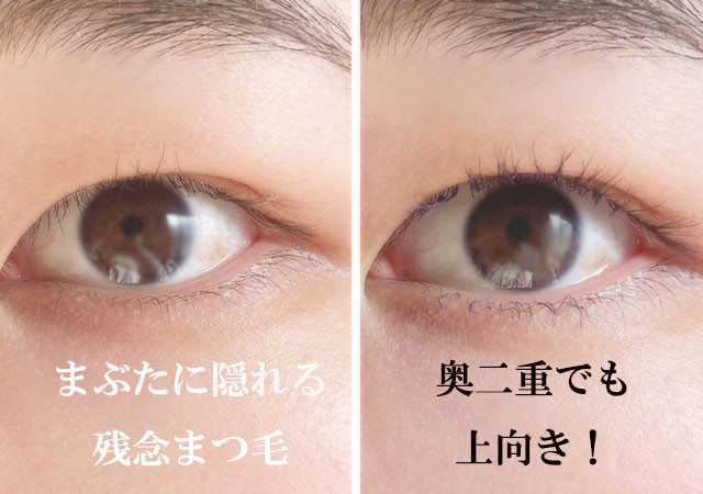 顔タイプソフトエレガントの優しげな印象を生かすために、まつ毛は軽くカールさせる程度に留めます。