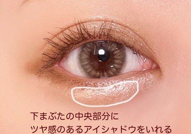 下まぶたにもサッと入れると、さりげなく陰影をプラスしてデカ目効果を出すことができます。