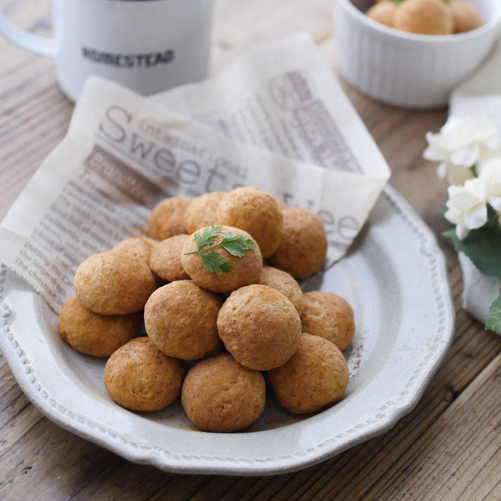 お豆腐は水切り不要です。生地を丸める際は、手にサラダ油をつけて丸めると、くっつかずきれいにできます。焼くと生地が膨らむので、間隔をあけて並べてくださいね。