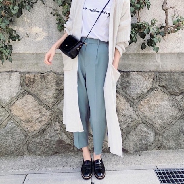 真冬はシャギーカーデと合わせて見た目にもあったかなコーデに。よく伸びるので、着心地も抜群です。